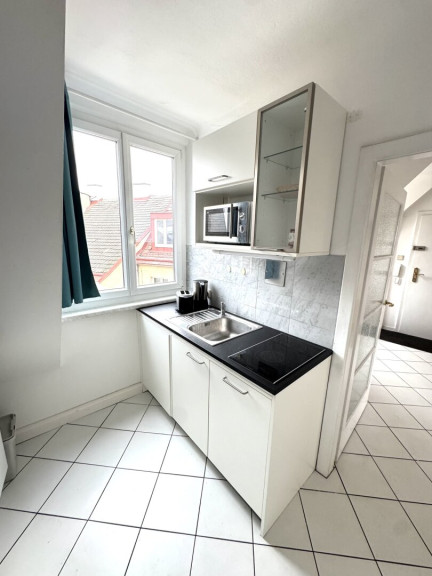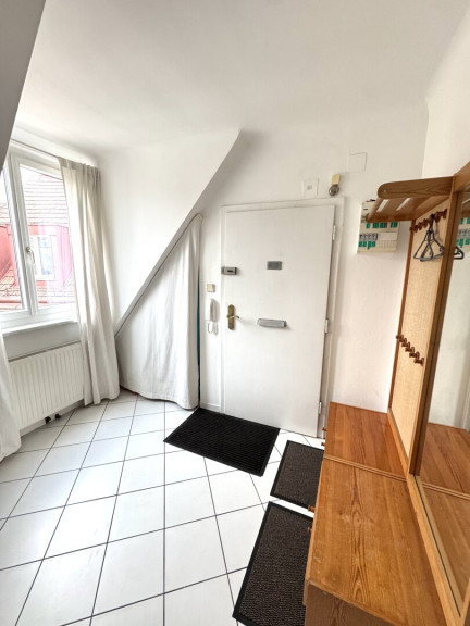 This furnished two room apartment is located on Rembrandtstraße in Vienna’s second district and is situated on the seventh floor of a well maintained building with elevator. The living area is approximately 50 square metres and the layout is designed with a central entrance hall, providing direct access to all rooms.