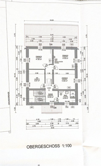 Obergeschoss: 3 Schlafzimmer, großer Schrankraum, Badezimmer mit WC, Gang
