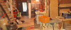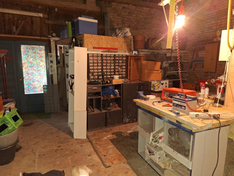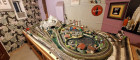 Das Herz eines Modelleisenbahnfans muss hüpfen vor Freude, wenn er in einem Zimmer eine bis ins Detail ausgebaute Modelleisenbahn Anlage sieht. Die ehemalige Garage ist zu einem Arbeitsraum für Heimwerker und einem Holzlager umgebaut.