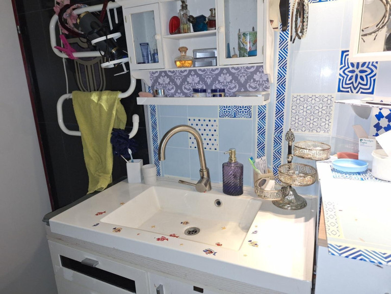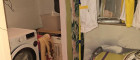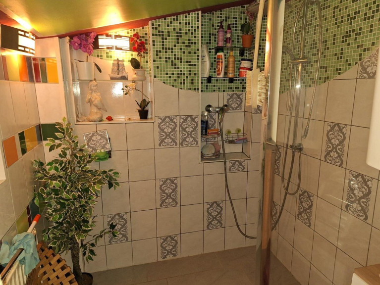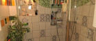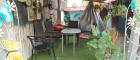 Ein Bad mit Dusche und ein extra WC ist vorhanden. Im kleinen Garten ist eine überdachte Veranda, die zum gemütlichen Sitzen einlädt.