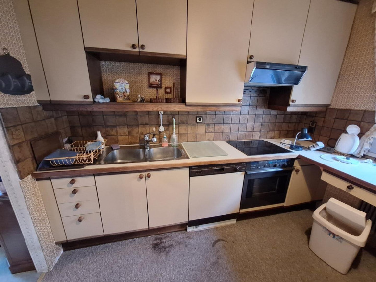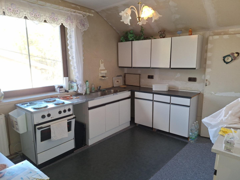 Das Haus ist teilunterkellert und verfügt über insgesamt acht Zimmer, die sich auf zwei Wohneinheiten verteilen. Im Erdgeschoss befinden sich vier Zimmer sowie ein Badezimmer mit separatem WC, im Obergeschoss stehen weitere vier Zimmer und ebenfalls ein Bad mit WC zur Verfügung. Für Fahrzeuge gibt es eine Garage, die Platz für einen PKW bietet.