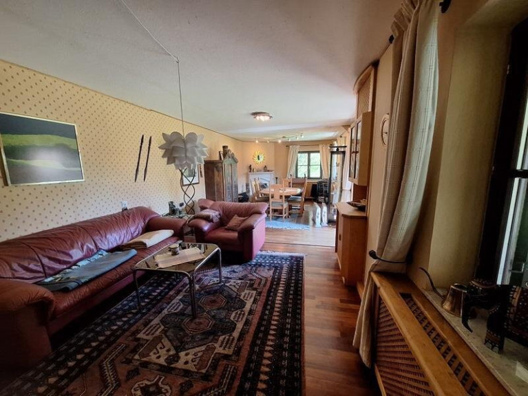 Es besteht aus 2 Schlafzimmern, einem ca. 35m² großem, freundlichen Wohnzimmer mit direktem Gartenzugang, einer Küche, einem Bad mit Wanne und Dusche, einem extra WC und diversen kleinen Nebenräumen.