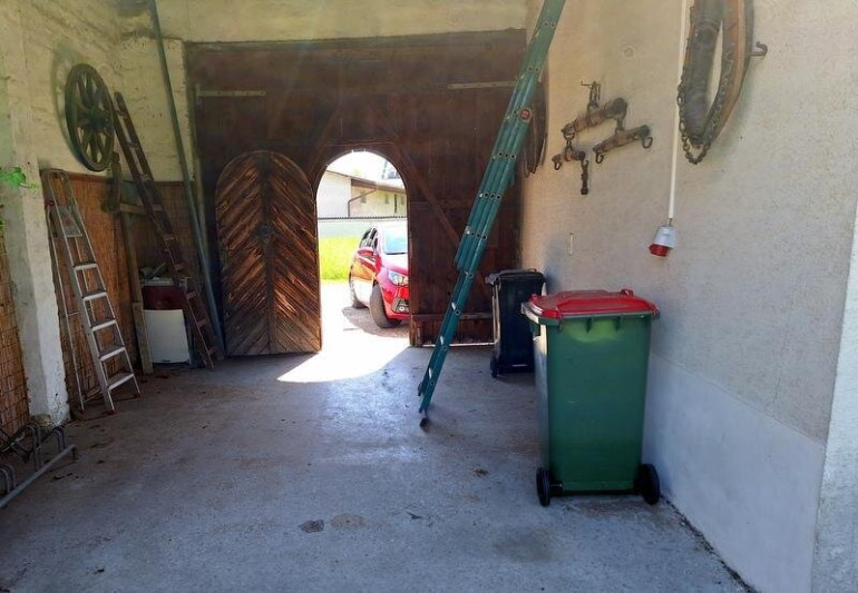 Die Hauseinfahrt mit dem großen Doppelflügeltor kann als wetter geschützter Abstellplatz für einen PKW genutzt werden.