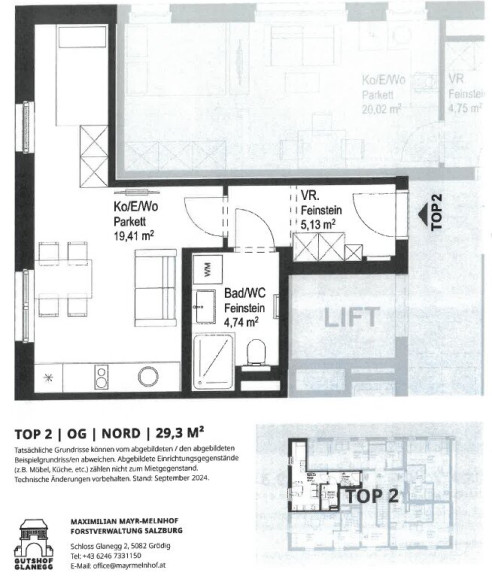 Die neuwertige, ca. 29,30 m² große Wohnung befindet sich im 1. Obergeschoß (mit Lift) des Nordtraktes und überzeugt mit durchdachtem Grundriss und hochwertiger Ausstattung. Die ideale Westausrichtung lässt viel Tageslicht und Sonne in die Räume.