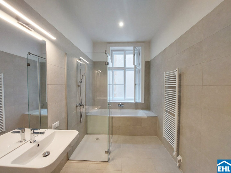 Fliesen, Parkett, Gas, Etagenheizung, Einbauküche, Personenaufzug, Bad mit Fenster, Badewanne, Dusche, Kabel/Satelliten-TV
