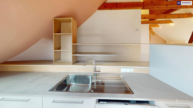 Ein echtes Highlight ist der Essplatz direkt unter dem großzügigen Dachfenster, das den gesamten Raum mit Tageslicht flutet und für eine einladende, freundliche Atmosphäre sorgt – ein Ort, an dem Wohnen, Genießen und Entspannen ineinander übergehen.