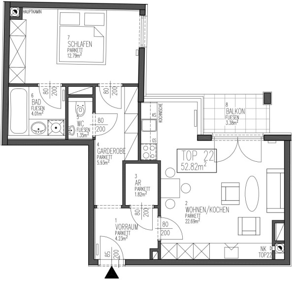 Die Wohnung liegt in einem gepflegten Neubau im 3. Liftstock und verfügt über folgende Räumlichkeiten: