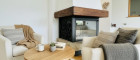 offene Wohnküche, Wohnzimmer mit romantischem Kamin, 12 m² Balkon mit grandiosem Ausblick, Windfang mit Garderobennische, Gäste-WC