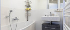 * elegant verfliestes Badezimmer mit Badewanne und Dusche
