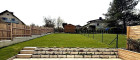 SĂĽdseitiger Garten mit Rollrasen, Terrasse mit Wasseranschluss & Holzzaun