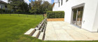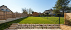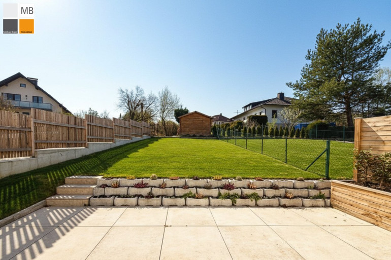 Südseitiger Garten mit Rollrasen, Terrasse mit Wasseranschluss & Holzzaun