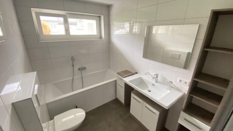 • Badezimmer mit Badewanne, Dusche, WC & Fenster