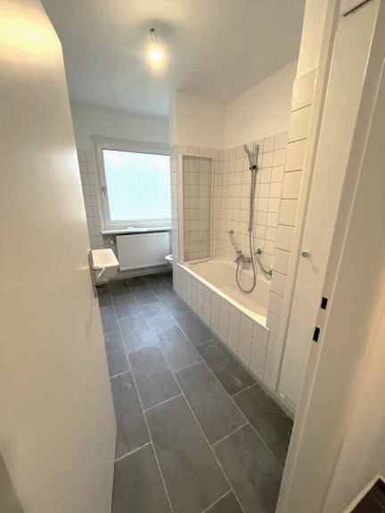 Badezimmer mit Badewanne – ideal zum Entspannen.