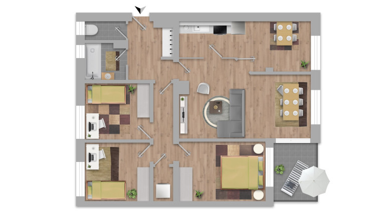 Vorraum - Badezimmer - getrennte Toiletten - Kinderzimmer - Hobbyzimmer - Schlafzimmer - Abstellraum - Wohnzimmer - Küche - Loggia