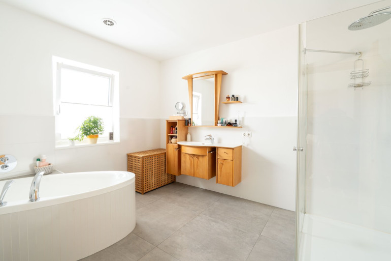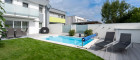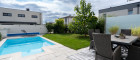 Fliesen, Parkett, Fußbodenheizung, Einbauküche, Badewanne, Dusche, Garage, Alarmanlage, Swimmingpool