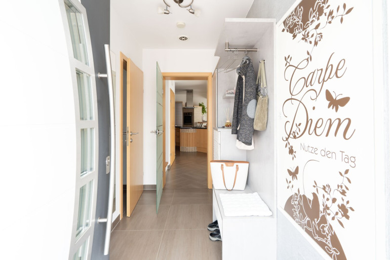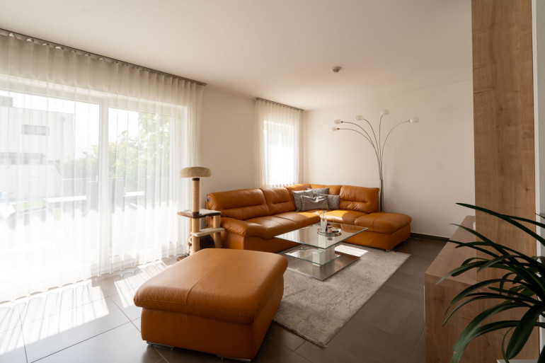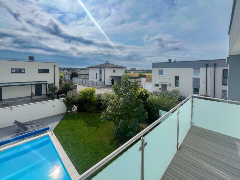 In Hörsching gelangt eine moderne Doppelhaushälfte mit rund 125 m² Wohnfläche auf einem 351 m² großen Grundstück zum Verkauf. Das Haus besticht durch eine durchdachte Raumaufteilung, hochwertige Ausstattung und zahlreiche Extras, die ein komfortables Wohnen ermöglichen. Im Erdgeschoss erwartet Sie ein großzügiger Wohn- und Essbereich mit Kamin, der für eine angenehme Atmosphäre sorgt. Von hier aus gelangen Sie auf die Terrasse und in den Garten – ein idealer Platz zum Entspannen oder für gesellige Stunden mit Familie und Freunden. Die Küche der Marke Breitschopf überzeugt durch modernes Design und praktische Ausstattung. Ergänzt wird das Raumangebot dieser Ebene durch ein Gäste-WC sowie den Technikraum und einen Abstellraum. Im Erdgeschoss befinden sich ebenfalls die 2 Carport-Stellplätze. Eine Wallbox ist ebenfalls vorhanden. Das Obergeschoss bietet drei helle Zimmer, die sich als Schlafzimmer, Kinderzimmer oder Büro eignen. Das Badezimmer ist mit Badewanne, Dusche und Doppelwaschbecken ausgestattet und erfüllt höchste Ansprüche an Komfort. Besonders attraktiv ist der Außenbereich: Ein Pool mit den Maßen 5 x 3 Meter und einer Tiefe von 1,60 Metern sorgt für Erfrischung an warmen Tagen, die Terrasse mit elektrischer Markise bietet zusätzlichen Wohnkomfort. Ein Brunnen erleichtert die Gartenbewässerung. Auch technisch ist das Haus auf einem modernen Stand. Eine Luftwärmepumpe in Kombination mit Fußbodenheizung und Wohnraumlüftung sorgt für ein angenehmes Klima. Sicherheitsbewusstsein unterstreichen die installierte Alarmanlage und die 3-fach verglasten Fenster.