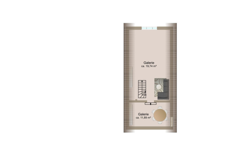 - Dachgeschoß: Studio mit 66 m2 und Balkon, Schrankraum, Bad, Stiegenaufgang