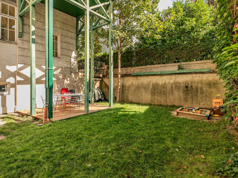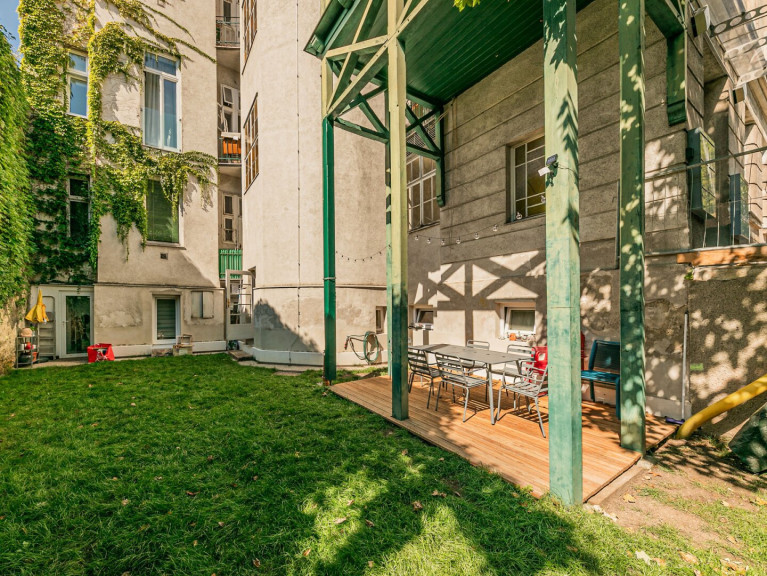 Ein weiteres Highlight ist der gepflegte Gemeinschaftsgarten zur allgemeinen Nutzung, der mit einer Terrasse samt Sitzgelegenheiten, einer Sandkiste und einem Griller ausgestattet ist. Dieser Außenbereich bietet zusätzlichen Freiraum und unterstreicht zugleich den hohen Wohnstandard der Immobilie.