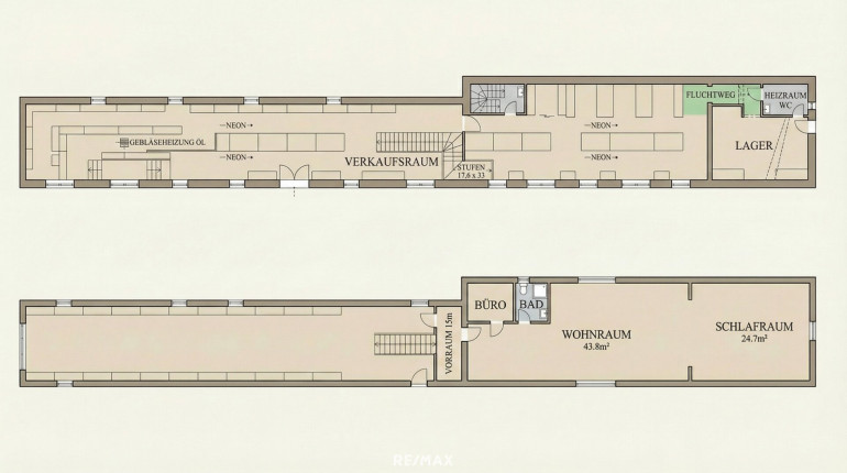 · zwei Ausstellungsräume 221,08 m² (vorderer Teil: 136,66 m² und hinterer Ausstellungsraum 84,42 m²)