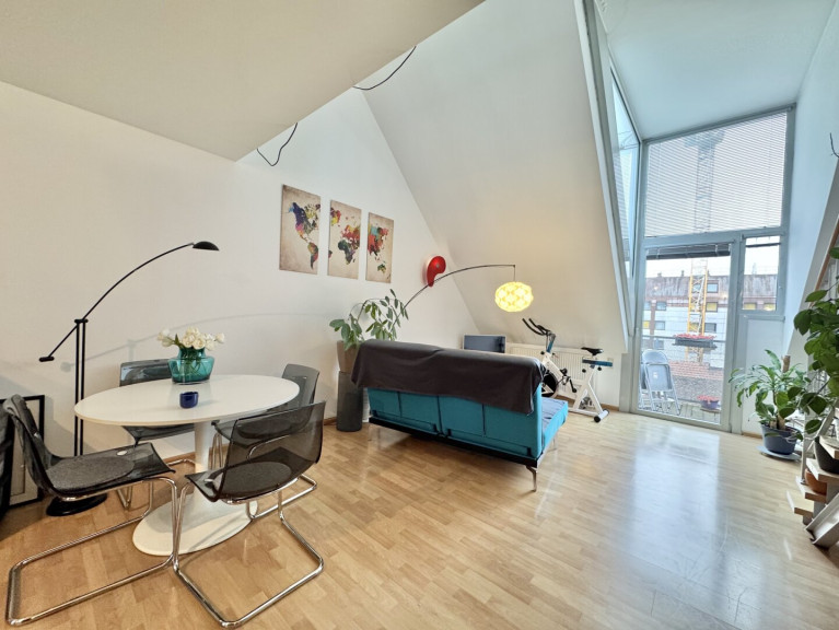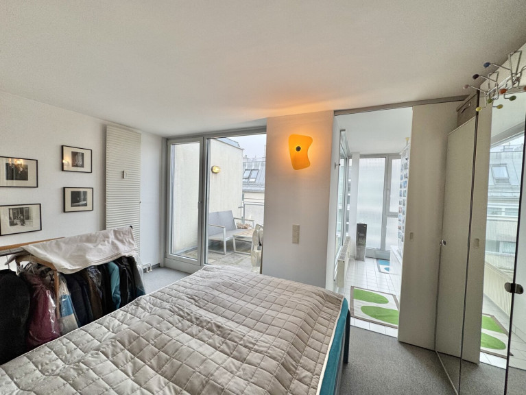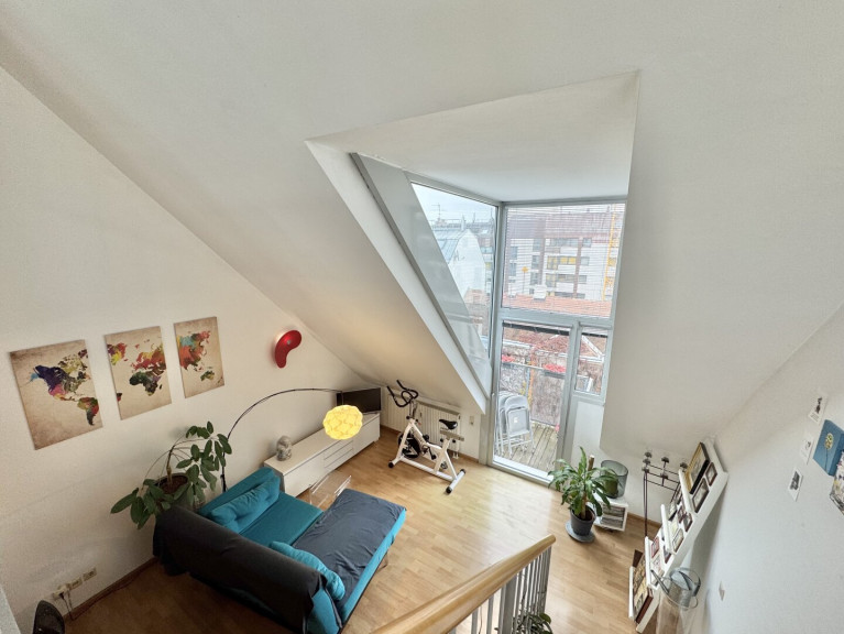 Diese loftartige 1,5-Zimmer-Wohnung befindet sich im 5. Liftstock (zum ruhigen begrünten Innenhof gerichtet) einer Neubau-Wohnhausanlage aus 1997 . Das Objekt besticht durch die loftähliche Architektur, die vielen Freiflächen (Balkon + Terrasse) sowie sowie die ruhige Innenhoflage.
