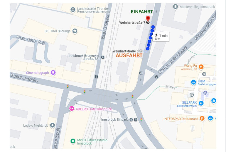 Zentrale Lage nahe EKZ SILLPARK sowie Hauptbahnhof Innsbruck.