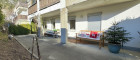 Sonnige Terrasse mit angrenzendem Garten