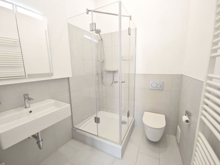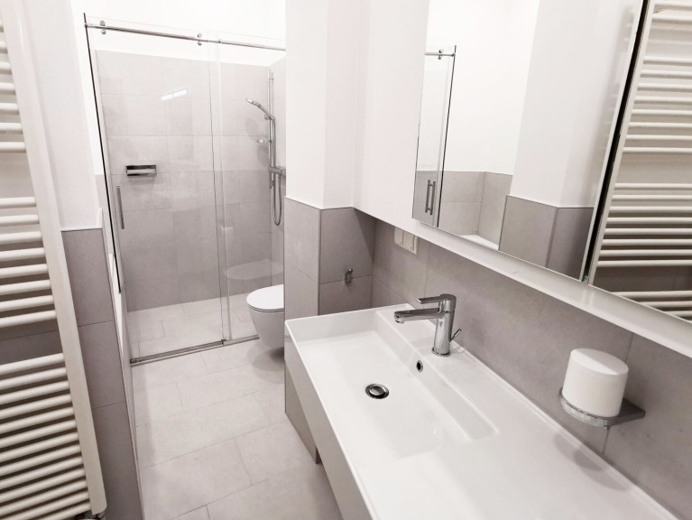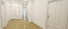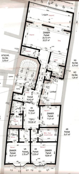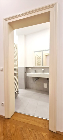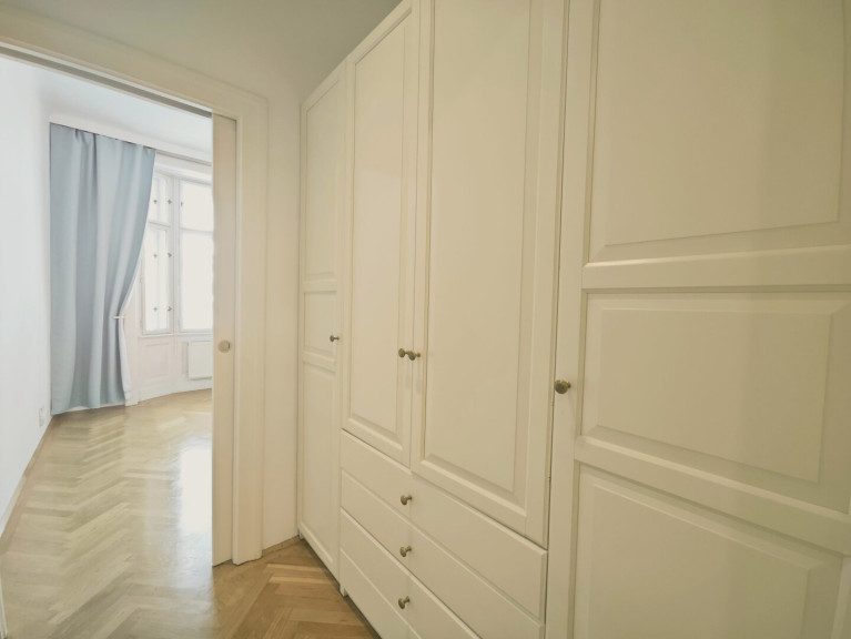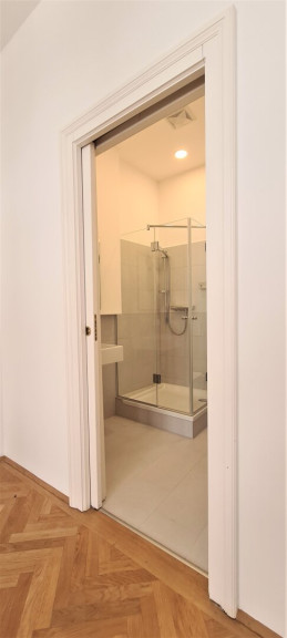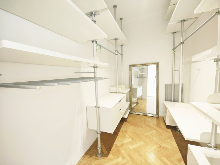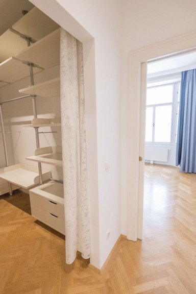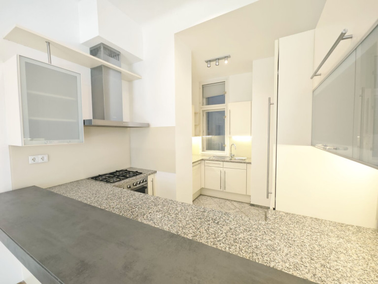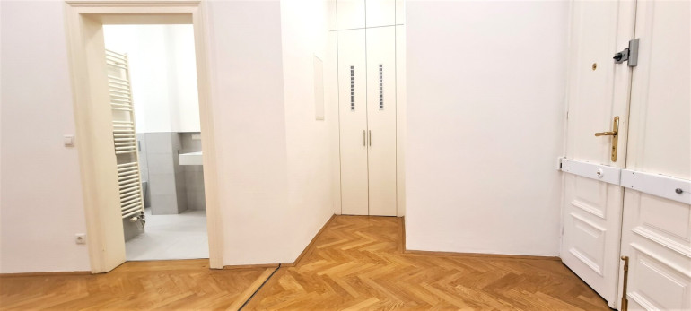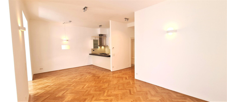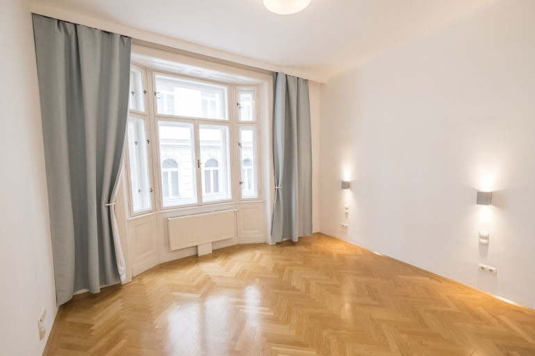 Die ca. 154 m2 große 4-Zimmer-Wohnung wurde 2021 renoviert (Bäder, WC, .....). Das Wohnzimmer hat quasi einen integrierten "Loggia"-Teil, also in jener Erweiterung, die im Rahmen der Hausrenovierung zum begrünten Innenhof hin hergestellt wurde. Die Wand-zu-Wand und Decken-zu-Boden Fensterfront kann in Segmenten bis zu 2/3 der Fläche geöffnet werden. Dies Feature verleiht ein Wohngefühl, wie es in einem historischen Haus normalerweise kaum vorzufinden ist. Es gibt 3 Schlafzimmer (1 mit en-suite-Bad und Garderobenschrank im Zugangsbereich, 1 mit begehbarem Schrankraum neben dem Zugangsbereich), 2 Bäder, 3 WCs (davon 1 separates WC), Küche (offen zum Essbereich im Wohnzimmer) separater Wirtschaftsraum mit Waschmaschine und Wäschetrockner. Unmöbliert (ausser Küche, Schrankraum und Einbauschrank zum 2. Schlafzimmer). Ein Kellerabteil ist vorhanden, jedoch nicht für alle Lagerungen geeignet.