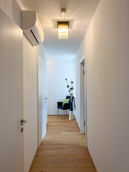 Ein geräumiges Vorzimmer empfängt Sie, Ihre Familie und Ihre Gäste. Dieses führt linker Hand ins Wohnzimmer mit offener Küche und rechts in die Schlafzimmer und Sanitärräume.