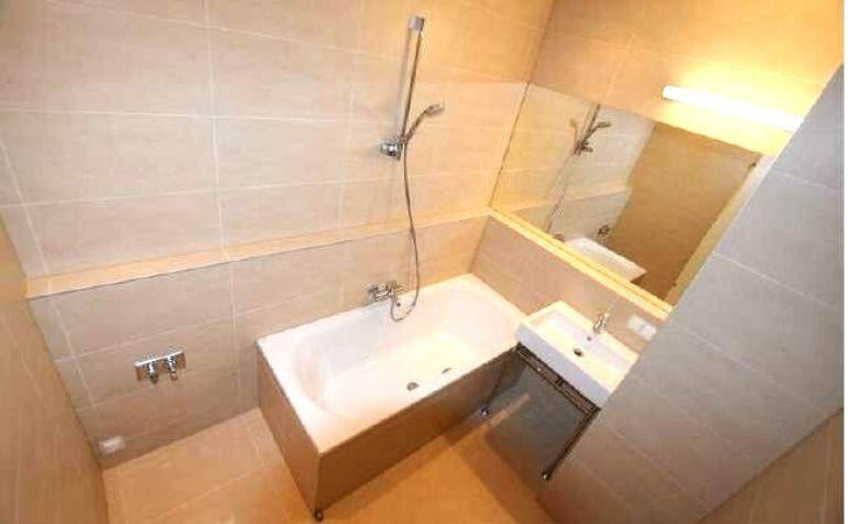 Lichtdurchflutete, klimatisierte DG-Wohnung mit Terrasse: Vorraum, Wohnzimmer (mit Terrasse), Küche (Nische), 1 Schlafzimmer, Bad mit Wanne, separates WC mit Handwaschbecken.