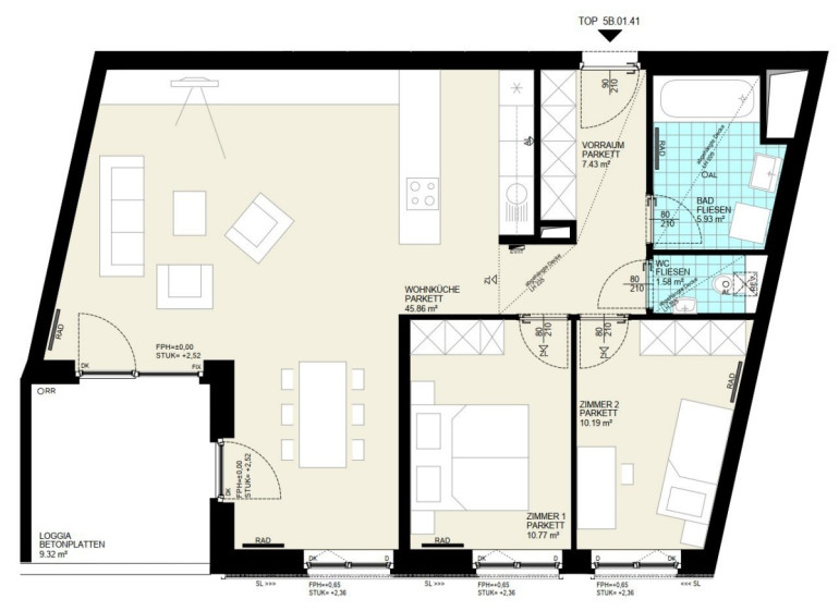 Erstklassige 3-Zimmer Dachgeschoß-Wohnung mit Loggia nahe Rennweg in 1030 Wien zu mietenIn einem modernen Passivhaus direkt am Fred-Zinnemann-Platz gelegen, befindet sich im 7. und zugleich letzten Stock diese hochwertig ausgestattete 3-Zimmer Wohnung mit folgender Aufteilung: