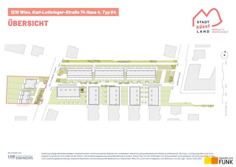 Das soeben fertiggestellte Neubauprojekt „STADT küsst LAND“ ist ein Bauvorhabenvon VI-Engineers Bauträger GmbH & Co KG und entsteht zentrumsnah in Stammersdorf auf einem ca. 10.000 m² großen Areal, eingebettet zwischen Brünner Straße und Jedlersdorfer Straße in 1210 Wien. Es umfasst insgesamt 46 freifinanzierte Reihenhäuser mit Eigengärten und Terrassen sowie 53 zugewiesene PKW-Stellplätze mit nachrüstbarer E-Lademöglichkeit. Ansprechende Grundrisse, eine werthaltige Qualität dank Ziegelmassivbauweise, ein nachhaltiges Energiekonzept mit hauseigener Luftwärmepumpe und Photovoltaik-Anlage am Dach, eine hochwertige Ausstattung wie Fußbodenheizung, außenliegender Sonnenschutz mit Elektroantrieb, Eichenparkettböden und Feinsteinzeug zeichnen zudem das moderne Projekt aus. Alle Bilder: © VI-Engineers/ Toni Rappersberger. Fotos Innenräume: Musterhaus. Machen Sie sich selbst ein Bild- wir führen Sie gerne durch die Häuser.