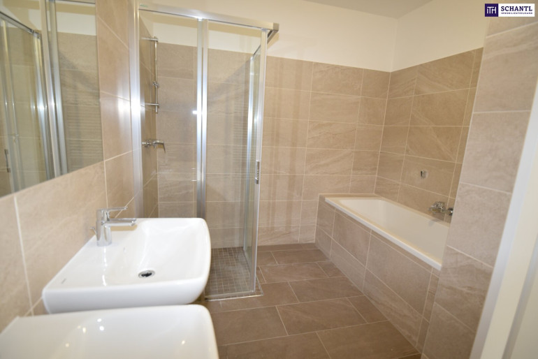 Ihre neue Wohnung besticht durch eine großzügige Raumaufteilung. Das Badezimmer mit Badewanne, Dusche und Doppelhandwaschbecken, sowie das separate WC sind mit Markenprodukten und stilvollem Feinsteinzeug ausgestattet. Das geräumige Wohn-Esszimmer hat eine sehr gut geplante Kochnische integriert und eine an die Küche äußerst nützliche "Speis" angeschlossen. Zwei gemütliche Schlafzimmer und die große Innenhof-Loggia in Richtung Süden runden diese charmante Neubauwohnung und viel Wohnqualität ab.