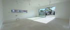 Weitläufiger Wohn-/Essbereich mit offener Küche, bodentiefen Glasfronten und direktem Zugang zur sonnigen Terrasse, dem Pool und dem gepflegten Garten