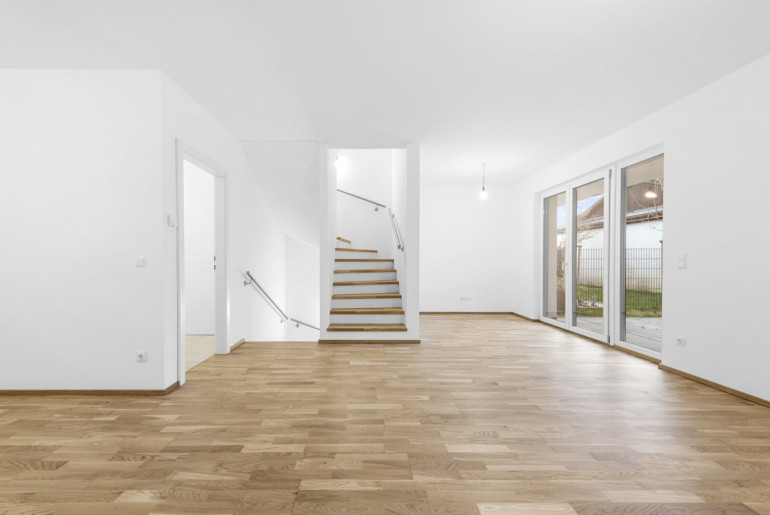 Zum Verkauf steht ein hochwertig ausgestattetes, schlüsselfertiges Reihenhaus in ruhiger Grünlage in Essling – ideal als langfristige Anlageimmobilie mit aufrechtem befristeten Mietvertrag.