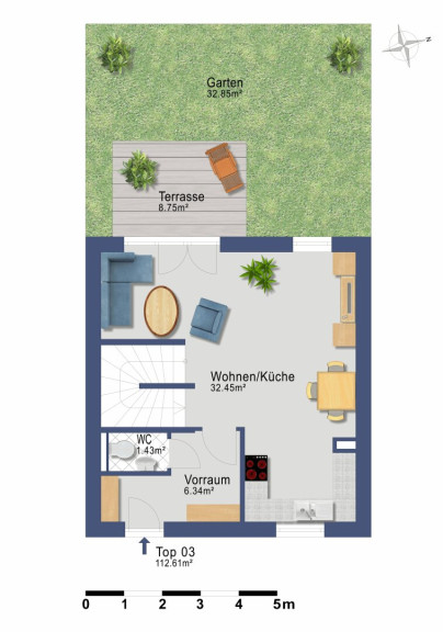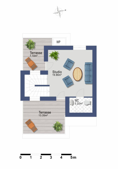 Freiflächen gesamt: 81,51 m² inkl. Terrasse, Garten, Balkone & zwei Dachterrassen