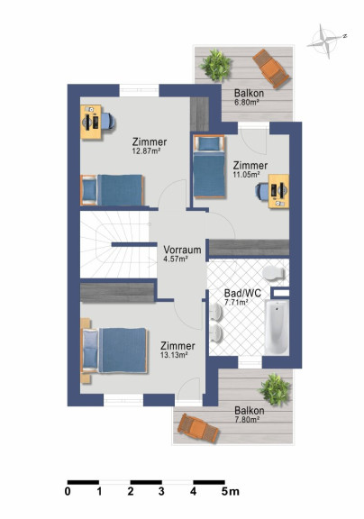 2 Balkone (ca. 6,80 m² und 7,80 m²)