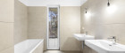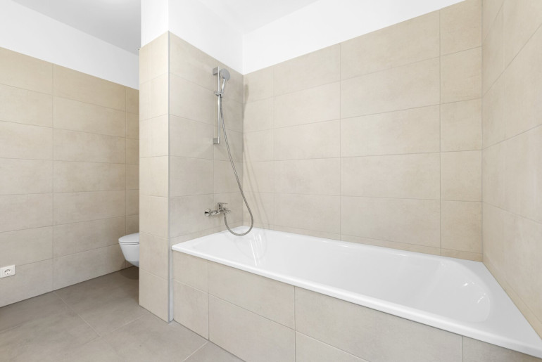 - Badezimmer mit WC, Badewanne und Doppelwaschtisch