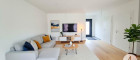 In der unteren Etage befindet sich ein geräumiges Wohnzimmer, das nahtlos in den Essbereich übergeht. Diese offene Gestaltung fördert die Kommunikation und schafft einen einladenden Raum für Familien und Gäste. In Ihrer zukünftigen Küche können Sie ideal für die Zubereitung von Speisen sorgen, und bietet gleichzeitig Zugang zu einer Terrasse mit Gartenbereich, der zum Entspannen und Verweilen einlädt. Große Fensterfronten sorgen für eine helle und freundliche Umgebung, während die offenen Wohnkonzepte sowohl Funktionalität als auch Stil vereinen.