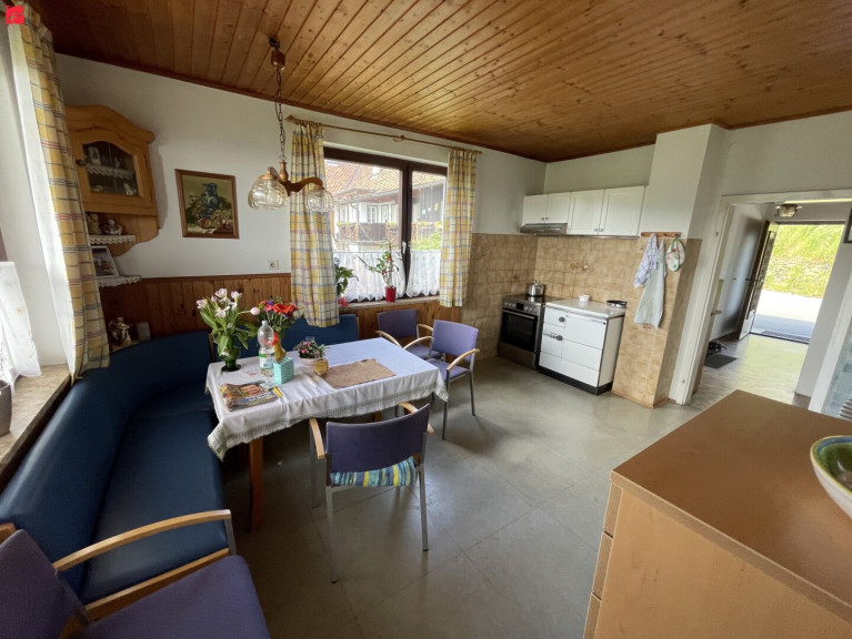 Sonnige Freiflächen, eine offene Küche mit großzügigem Essbereich, sowie ein blühender Garten mit Gemüsebeet und Gartenhaus. Die Aussicht auf Wiesen und Wälder verleiht dem Haus ein unverwechselbares Highlight. Die Liegenschaft bietet Ihnen drei geräumige Schlafzimmer, ein Badezimmer mit Fenster, Dusche und eine separate Toilette. Die Liegenschaft wird mit Pellets beheizt.