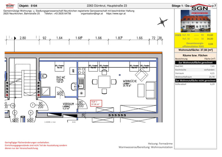 | Heizwärmebedarf: | B 33,60 kWh/m²a |