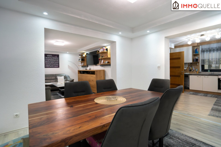 Ergänzt wird das Wohnangebot durch einen ca. 40 m² großen Teilkeller sowie einen Lager- und Werkraum unter der Garage mit weiteren rund 30 m² Fläche. Eine Garage für zwei Fahrzeuge und zusätzliche Stellplätze auf dem Grundstück sorgen für komfortables Parken.