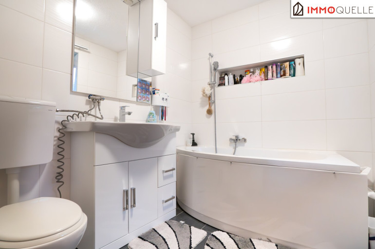 Fliesen, Laminatboden, Kamin, Zentralheizung, Bad mit Fenster, Badewanne, Parkhaus