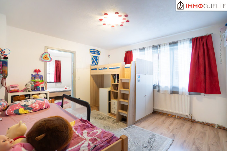 Im Obergeschoss befinden sich drei weitere Schlafzimmer, ein zweites Bad mit WC und ein praktischer Abstellraum. Das Dachgeschoss wurde bereits ausgebaut und bietet mit zwei zusätzlichen Räumen sowie zwei kleinen Abstellräumen weiteres Potenzial – sei es für Gäste, Hobbies oder als Homeoffice.