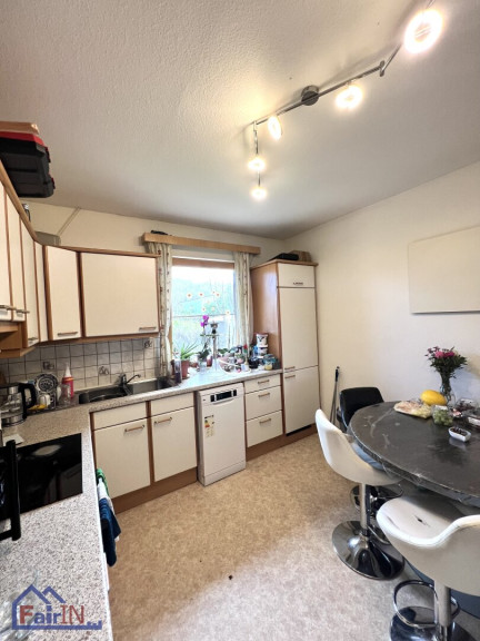 Fliesen, Laminatboden, Einbauküche, Dusche
