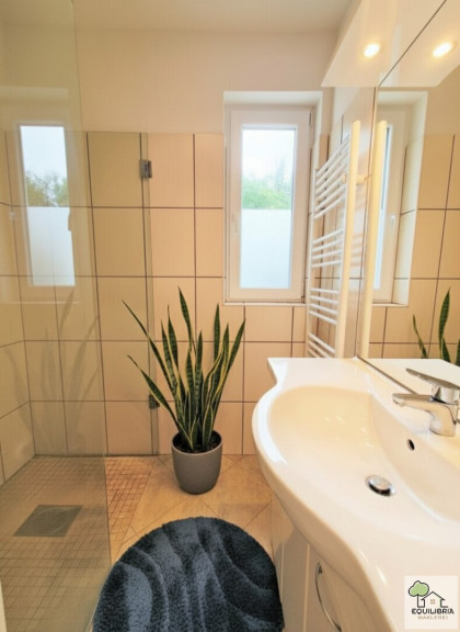 - eine großzügige Wohnküche, die mit 23m² viel Platz zum Wohnen, Kochen und Genießen bietet. Von hier aus hat man einen wunderschönen Blick ins Grüne undauf den Ebreichsdorfer Golfplatz.