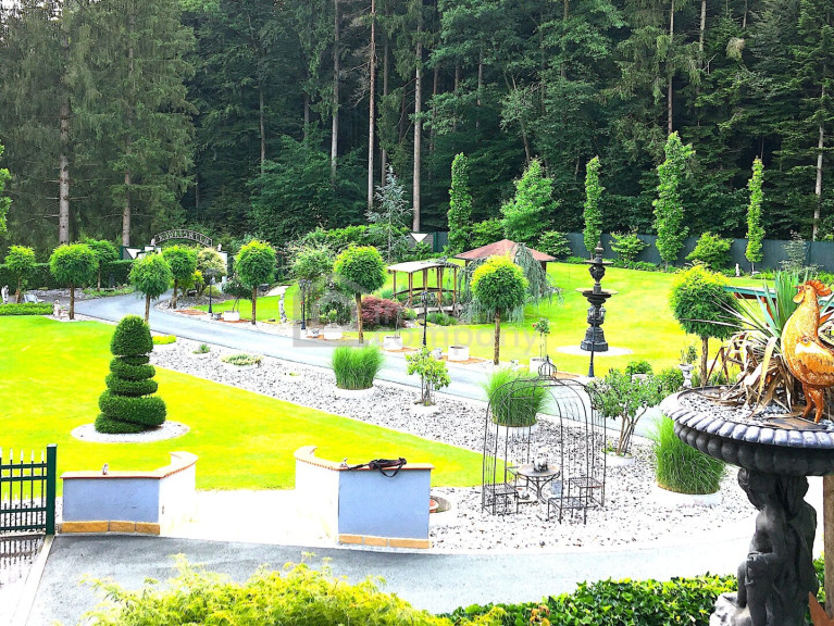 Auf einem weitläufigen Grundstück von über 7.000 m² und rund 3.250 m² eigener Wald, öffnet sich eine Welt der Stille, Geborgenheit und Natürlichkeit. Der Park-ähnlich angelegte Süd-Ost-Westgarten umrahmt das Haus mit altem Baumbestand und liebevoller Bepflanzung.