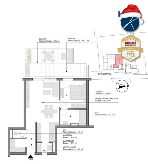 - Top 6 (1.OG): 2 Zimmer / 71,37 m² Wohnfläche + 25,23 m² Balkon - Kaufpreis € 479.000,-