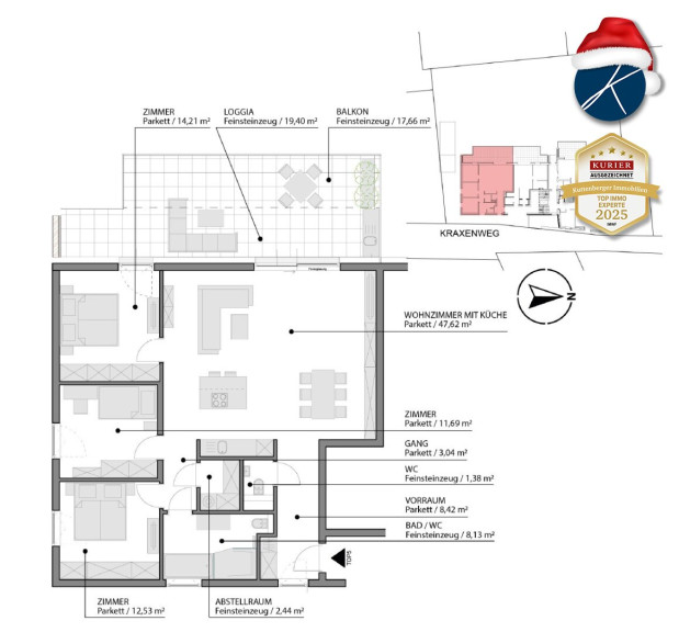 Das exquisite Neubauprojekt befindet sich am Kraxenweg in einer der beliebtesten Wohnlagen, dem Kremser Steindl. Es umfasst 10 exklusive Wohneinheiten, die mit modernen Annehmlichkeiten und durchdachten Grundrissen überzeugen. Die Wohnungen variieren in der Größe von 60 m² bis 160 m² und bieten 2 bis 5 Zimmer, ideal für Singles, Paare und Familien. Jede Einheit besticht durch großzügige Freiräume wie eigene Gartenanteile, Terrassen und Balkone, die den Bewohnern zusätzliche Lebensräume schaffen. Zur Lagerung des persönlichen Gutes, stehen großzügige Lagerflächen mit einer durchschnittlichen Größe von rund 10m² zur Verfügung