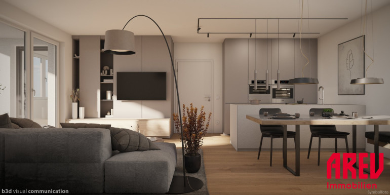 Alle Wohnungen sind ausgestattet gem. Bau- und Ausstattungsbeschreibung (ohne Möblierung od. sonstiger eingezeichneter Einrichtungen). Alle grafischen Darstellungen sind symbolhaft (Symbolgrafik) zu verstehen und geben die Wirklichkeit nur andeutungsweise wieder - die tatsächliche Ausführung kann aufgrund von behördlichen Auflagen und technischen Erfordernissen maßgeblich abweichen. Druckfehler, Änderungen und Irrtümer vorbehalten!
