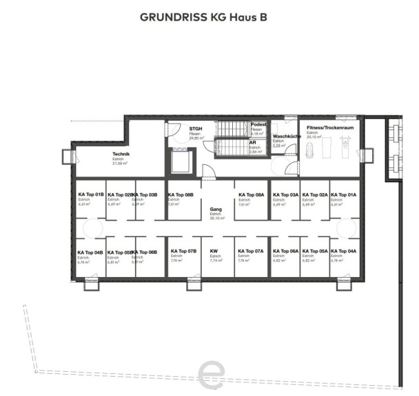 >> großzügiges Kellerabteil, Fahrrad- und Kinderwagenraum, Waschküche und komfortabler Fitnessraum im Haus B